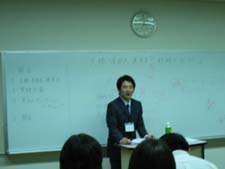 第1部では、大橋清朗さんから「結婚の秘訣」について 具体的なデータや 体験談をもとにお話いただきました。 大橋さんは、NPO法人「花婿学校」で未婚の男性と女性を対象に セミナーをされています。少子化対策にも力をいれられていて、 マスコミだけではなく、教育関係からも注目されています。 大橋さんのお話は、とてもテンポよく、わかりやすい内容でした。 未婚率の上昇により、将来は5人に1人が独身なんていうこともあるそうです。 参加者の方からも「独身でいることと 結婚することの違いは何ですか?」 「初対面でどうやって声をかけたらいいですか?」という質問も とびかい、結婚に対する意識の高さが伝わってきました。 ![]() ![]() 今日は違った観点のお話しを聞けました。 逆にチャンスはたくさん転がっていると みんなに伝えたいと思いました。 K.Nさん 40代 女性 大橋先生のおもしろいお話しを聞けてよかった、 ワークショップもおもしろかった。 岡本和久さん 男性 ![]() 最後に全員で集合写真を撮りました♪